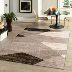Modern rug with geometric pattern, mottled in brown and beige
