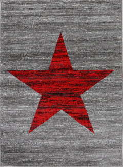 Red trendy short-pile rug, star pattern, youth room, grey, easy to clean