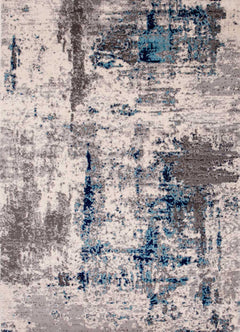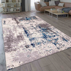 Abstract Vintage Look Rug for Living Room, Short Pile Rug, Runner, Blue/Grey