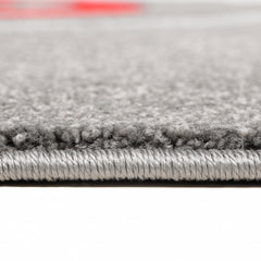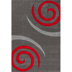 Short-pile carpet with spiral design, densely woven, thick and soft surface, grey and red, hand-cut contours, for living room, bedroom, kitchen